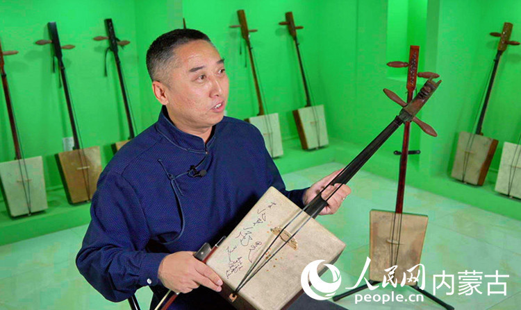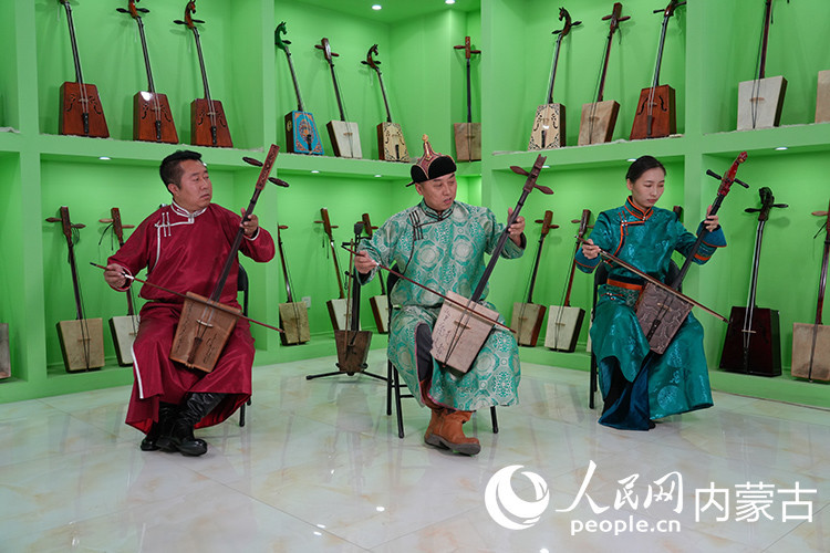非物质文化遗产代表性传承人石晓涛在演奏潮尔琴。人民网记者 张力洋摄